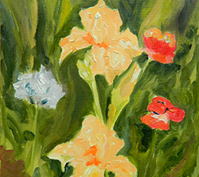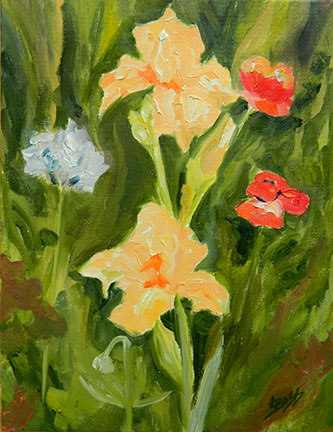 Apricot Iris – Original Painting by Linda Boss. This painting was done earlier in the year in a friend’s garden. It was a cool, crisp morning in Northern Michigan but the sun was shining and I took advantage of it! Painted with the Northern Michigan Plein Air Painters group weekly get together.