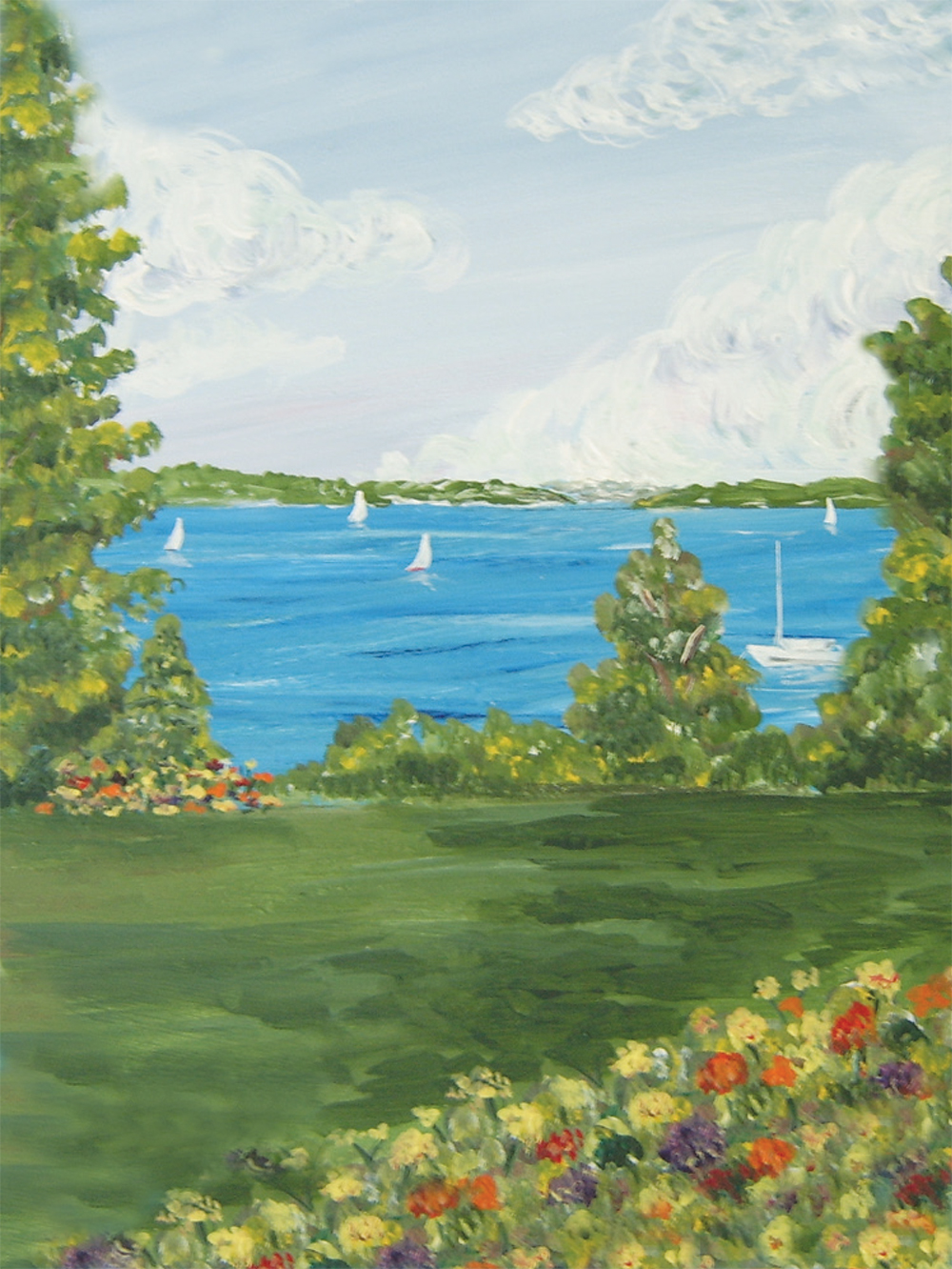 Lake Charlevoix Bluff Garden. This print is a reproduction of a painting I did for a client as an anniversary gift for their daughter. It was where they had held their wedding. The painting was actually done on a piece of furniture so that they could use it in their cottage. I laugh when I say “don’t worry if your walls are full… I’ll find something else to paint a memory on!” I think it made an excellent keep sake don’t you?`