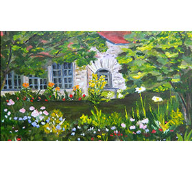 This magnet measures 2 inches by 3.5 inches. The image is a reproduction of “The Stone Carriage House”, an 11×14 acrylic on canvas board. The original of this painting was in the exhibit “An Up North State of Mind” concurrent exhibits held at the Charlevoix Circle of Arts and the Jordan River Arts Center.